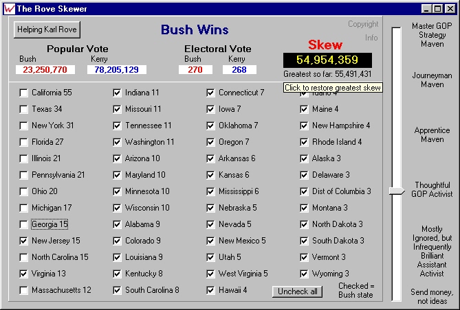 votes in non-Bush states. Your rank among the skewmeisters is